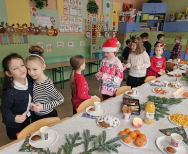 W klasie 2a odbyło się wyjątkowe spotkanie wigilijne, które wprowadziło uczniów w radosny i świąteczny nastrój. Sala została pięknie udekorowana, a wspólny stół wypełnił się pysznym poczęstunkiem przygotowanym przez rodziców.